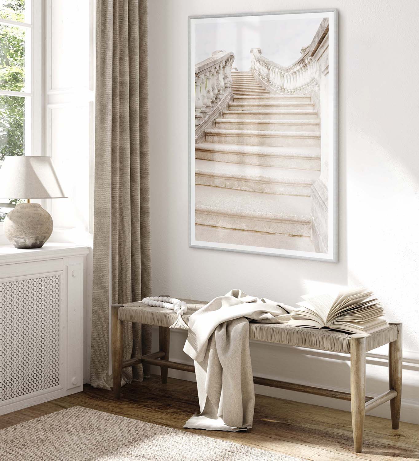 Sun-soaked photos of beautiful architectural details. Bricks and stone in white and cream create a soothing pallet. Finished in a light, neutral-toned moulding with a striated texture.