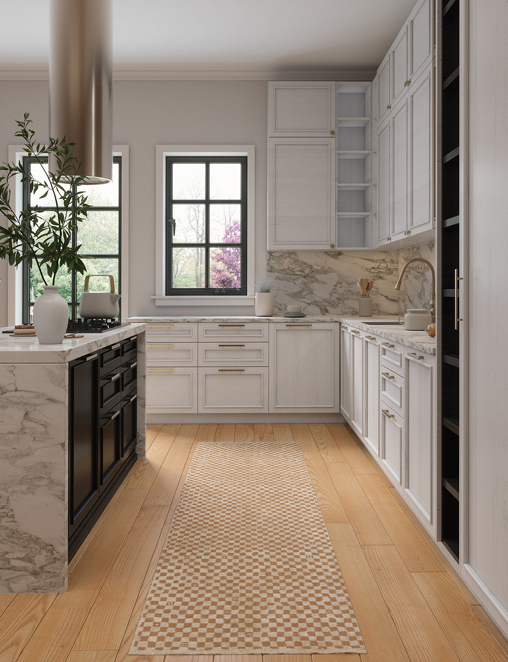 Metro is a beautiful centerpiece with a moroccan/checkered/minimalist-inspired design and a range of sumptuous, saturated colors such as checkered coral and natural sand beige. It effortlessly pairs with many different rug pads, making it a versatile choice for any room. The Metro collection offers two options: machine washable rugs or premium linen rugs that are easy to clean (although not suitable for machine washing).