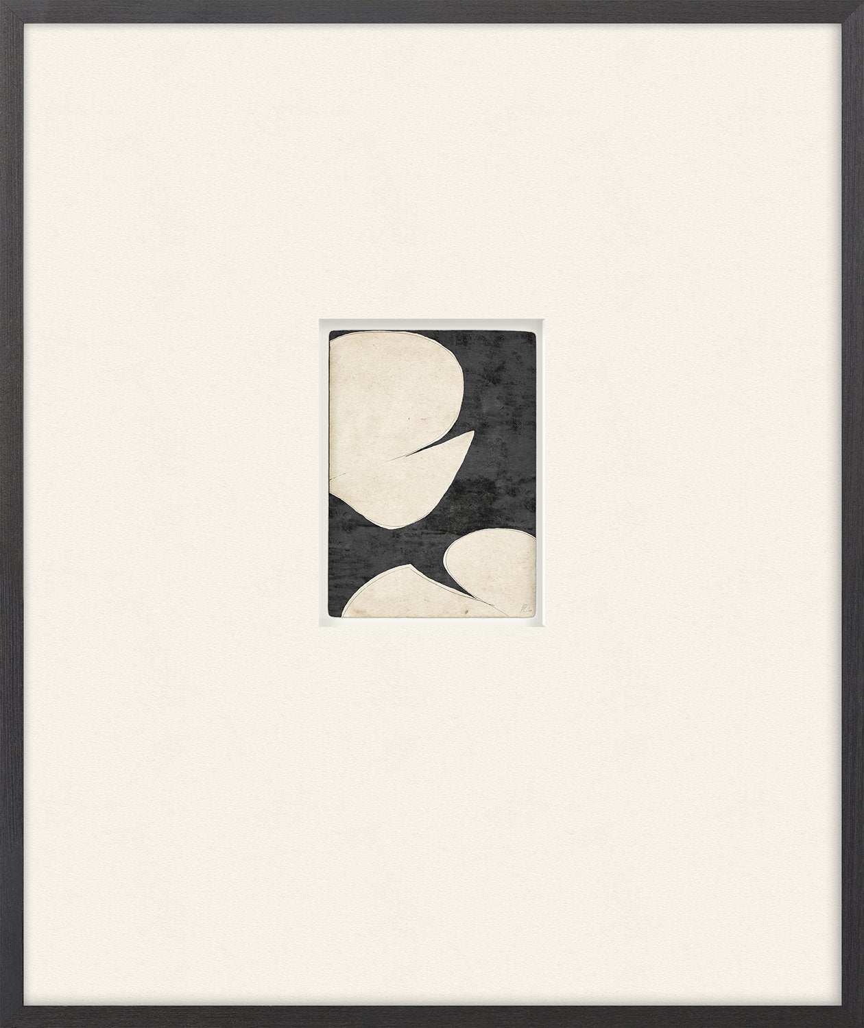 The shapely forms of these four contemporary, minimal compositions are well played out in graphic black and white. Each is framed with pebbled mattes and contrasting rustic charcoal frames. For a bigger punch, a larger, un-matted size is available as well.