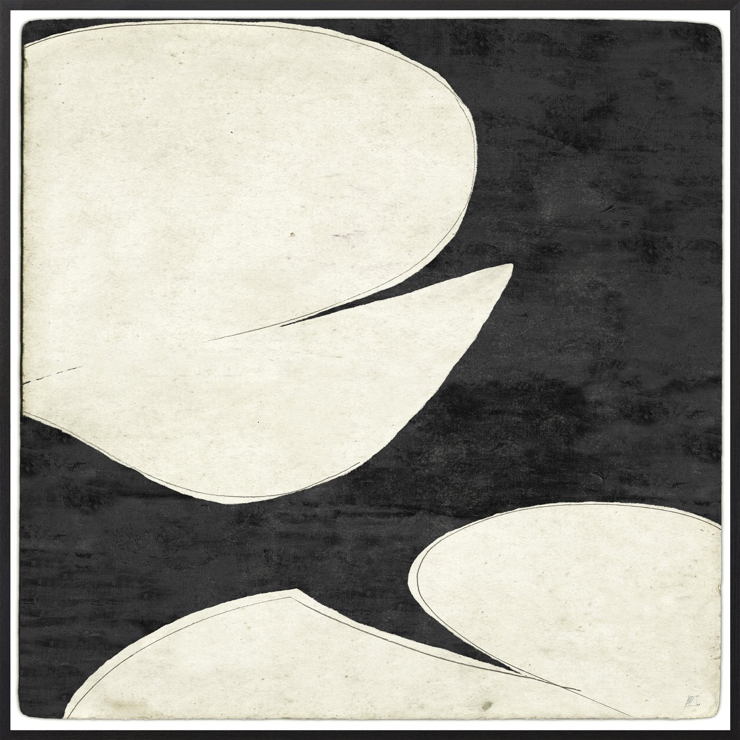 The shapely forms of these four contemporary, minimal compositions are well played out in graphic black and white. Found here in the largest size, they are finished with a minimal, rustic charcoal frame. Also available in smaller matted size.