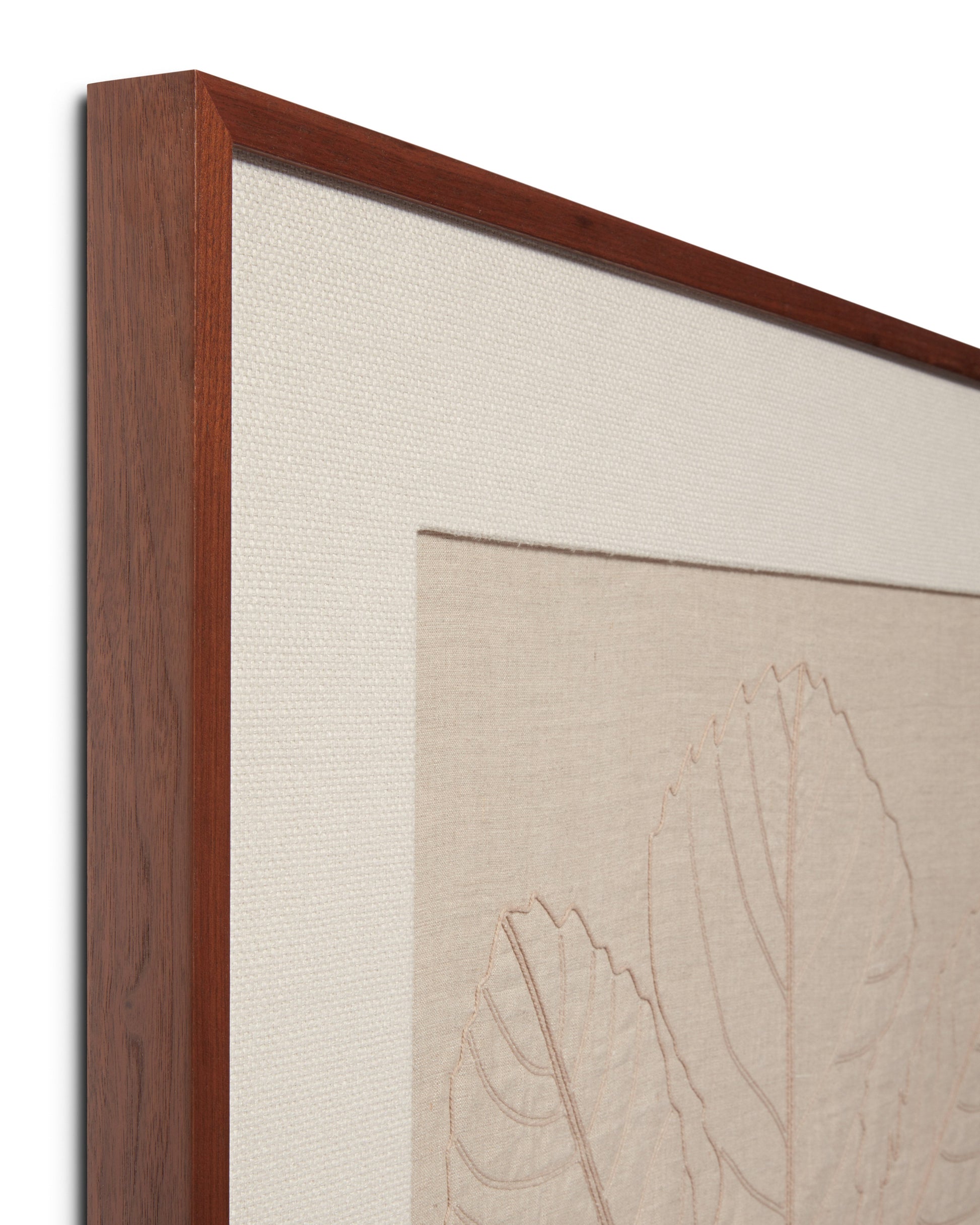 Created as a timeless textile art piece, Miss Maple is a finely embroidered leaf study with all the charming detail of a classic botanical illustration. Made in India on an oatmeal base cloth, Miss Maple celebrates the incomparable beauty found in nature.