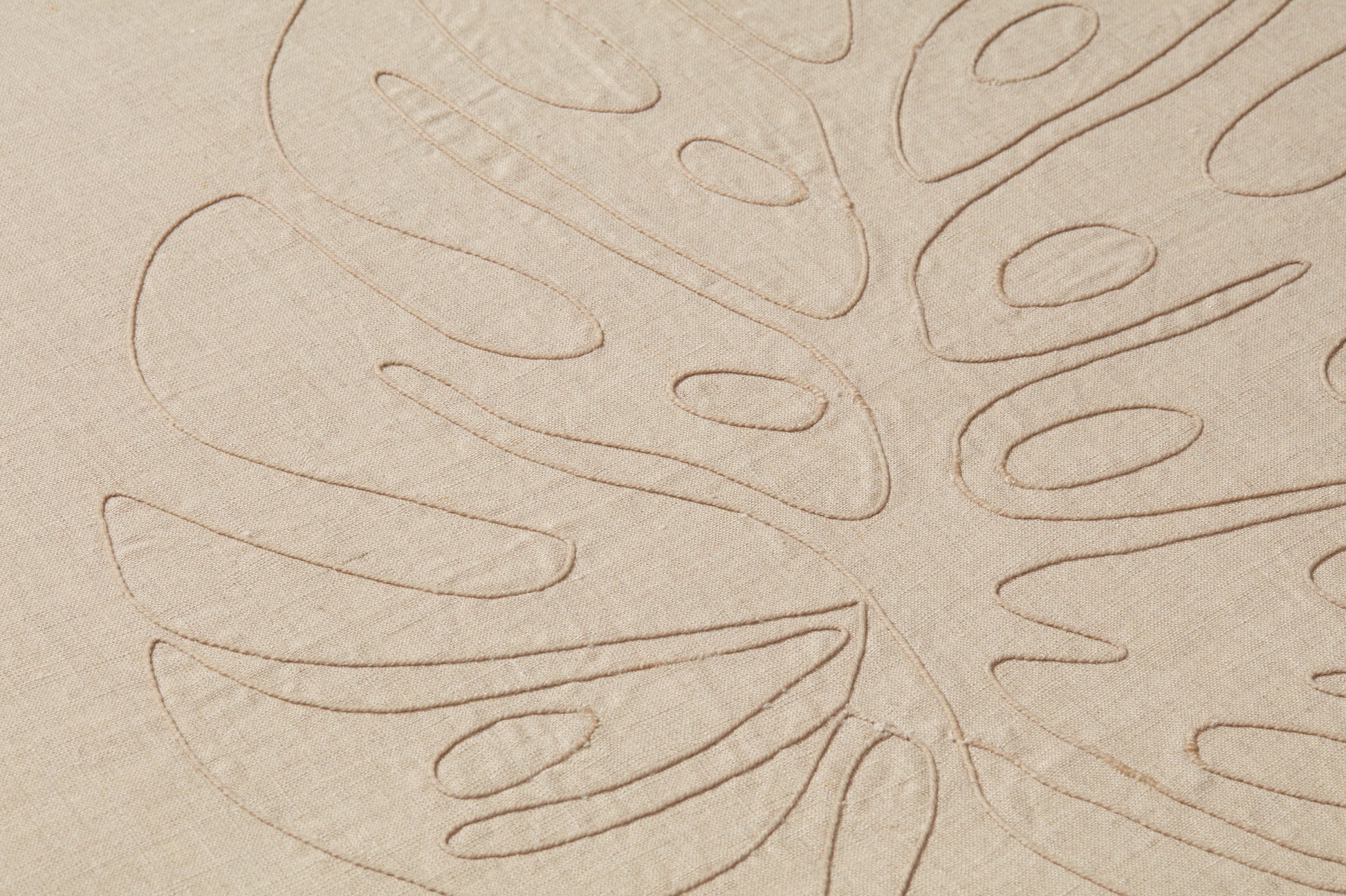 With all the delicate detail of a botanical illustration, Monstera was created as timeless textile art. Embroidered on a relaxed oatmeal base cloth, Monstera demonstrates the fine craftsmanship we enjoy from our artisans in India.