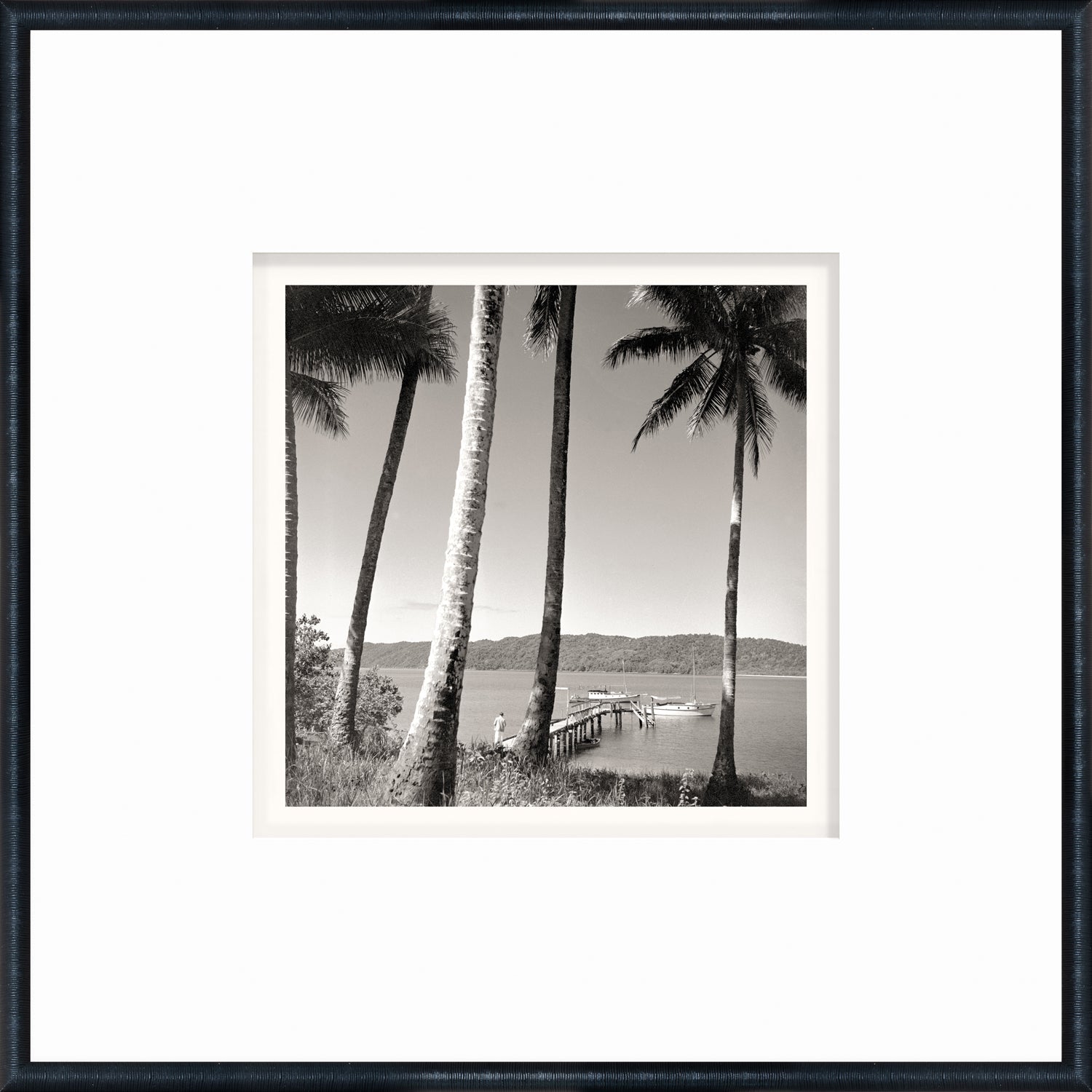 Idealized nostalgia, captured in black and white photography from the mid 20th century. Framed in a black moulding with a linear texture.