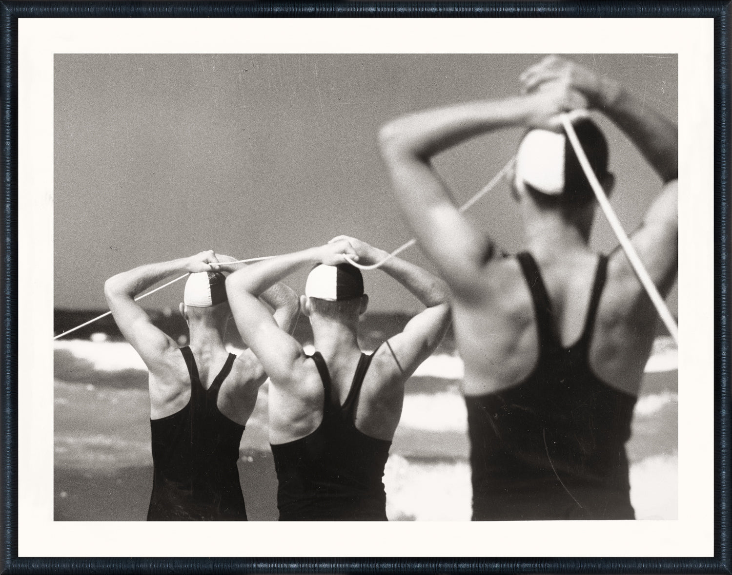 Idealized nostalgia, captured in black and white photography from the mid 20th century. Framed in a black moulding with a linear texture.