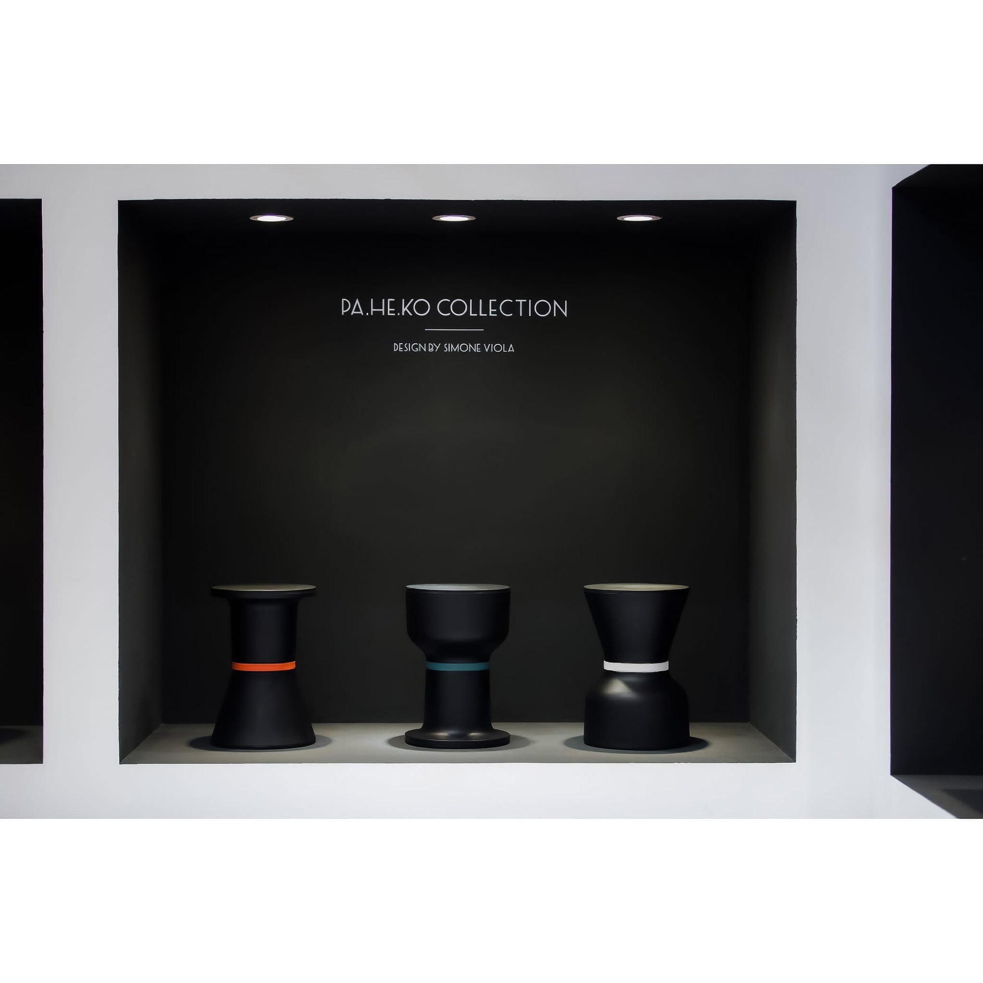 The shape changes capsize, blends with the environment. Its volumes offer the coordinated harmony of an object that is somehow out of trends, mixing the neoclassical 1980’s style with the minimalistic design of the XXI century. The top and bottom parts of PaHeKo can be mixed and matched, and the joint ring is available in five colours options. All these variations allow you to create up to thirty different combinations.