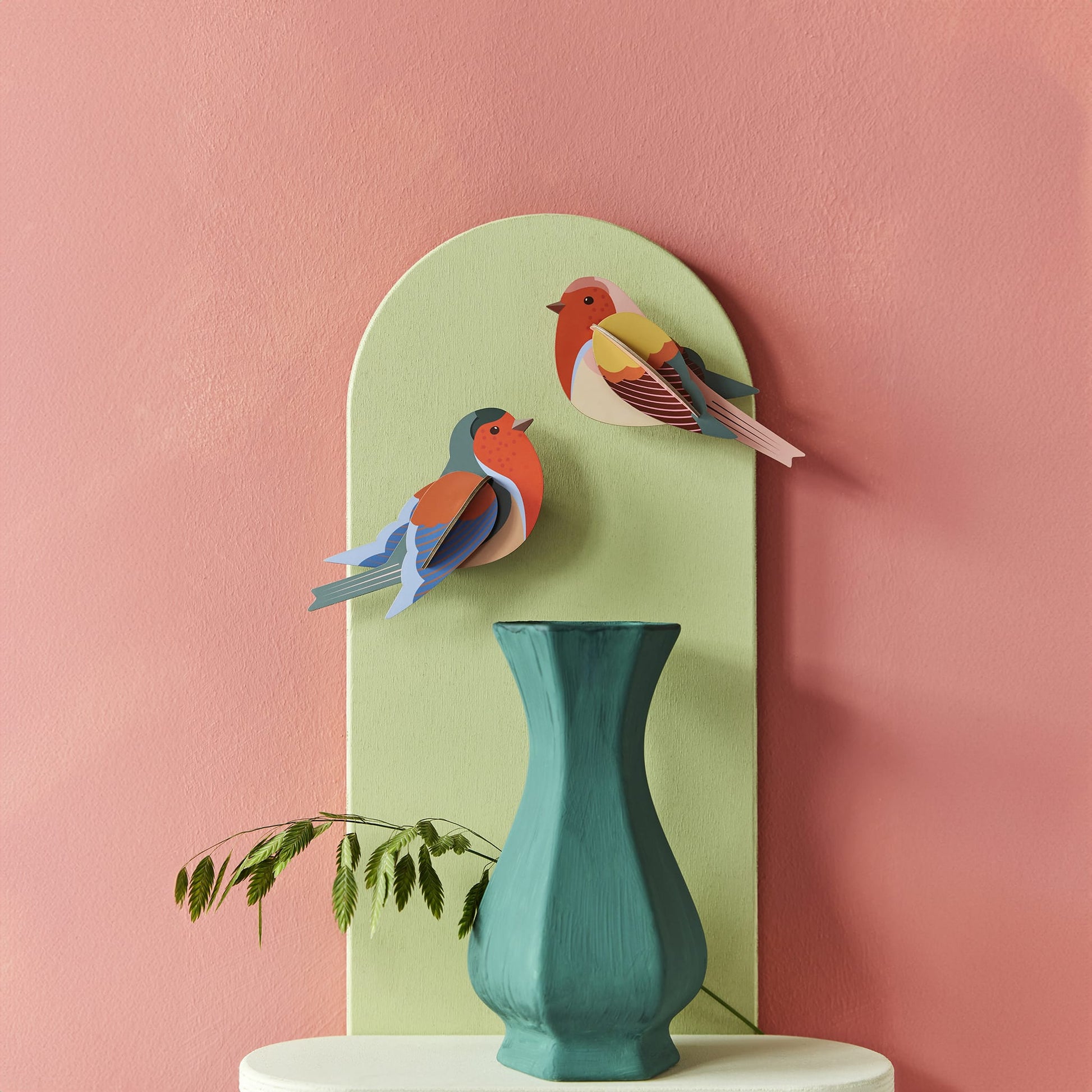 The Robins by Studio Roof capture the essence of garden birds with their vibrant and lively design. These 3D wall art pieces bring the charming presence of robins into your home, adding a touch of color and joy to any space. Made from recycled cardboard and printed with vegetable inks, these eco-friendly birds embody Studio Roof's commitment to sustainability and creativity.