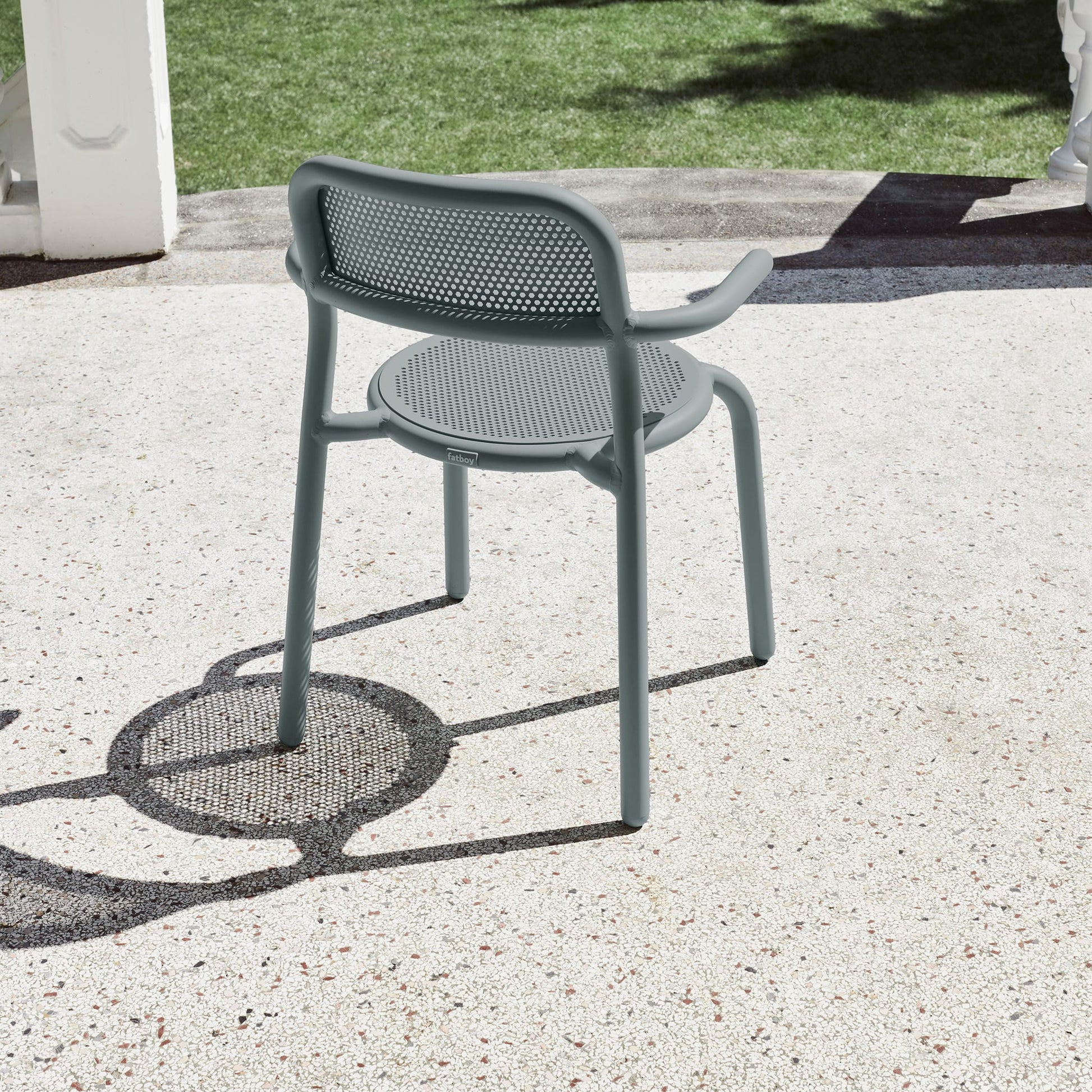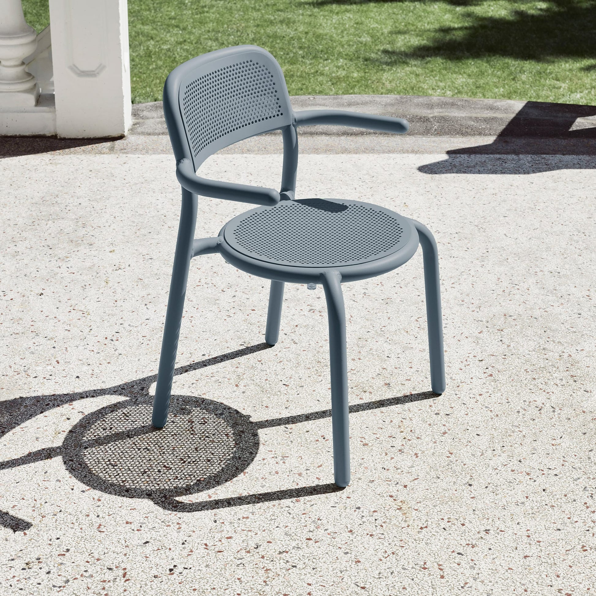 Toní Armchair is a robust garden chair with a nod to the classic bistro chair. Made of high-quality aluminum and provided with the highest standard outdoor coating, the Toní Armchair is stainless, colorfast, and resistant to all weather types.