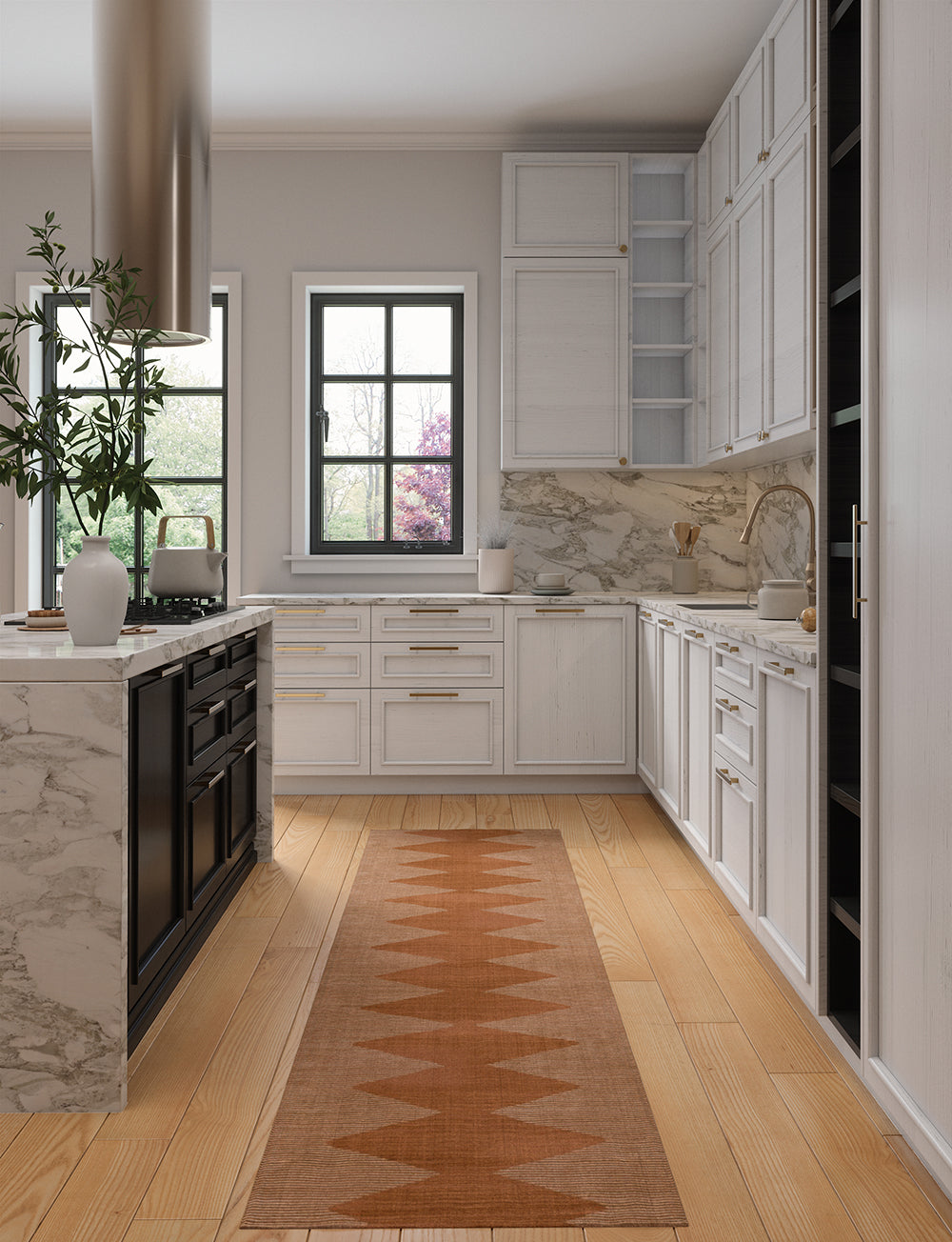 Zona is a beautiful centerpiece with a Boho Persian design with a simple color mix of orange and ivory. It effortlessly pairs with many different rug pads, making it a versatile choice for any room. The Zona collection offers two options: machine washable rugs or premium linen rugs that are easy to clean (although not suitable for machine washing).