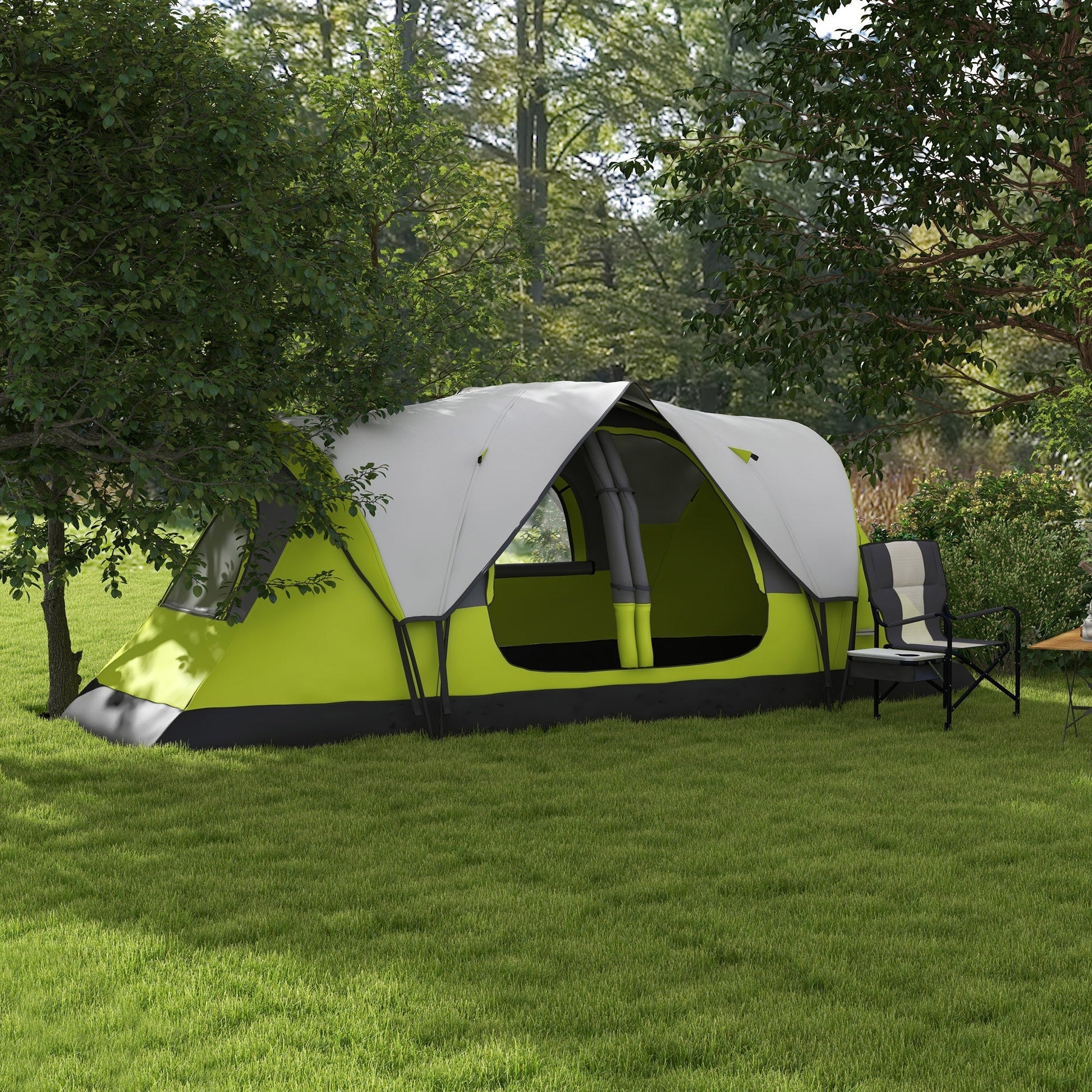 Outsunny Camping Tent for 6-8 Man with 2000mm Waterproof Rainfly and Carry Bag for Fishing Hiking Festival, Green